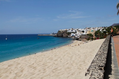 Mod læsiden starter den lækreste lyse sandstrand. Efter 25 km når den havnebyen Morro Jable helt mod syd med færger fra Armas og store katamaraner fra Fred. Olsen Line til Las Palmas kun et par timers sejlads væk.