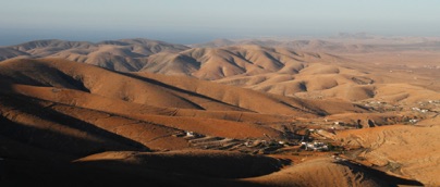 Fuerteventura er den mest barske af De kanariske Øer. Store bjergkæder strækker sig ned over den 100 km lange ø. De er mere imponerende end frodige. Bjergene er lige akkurat for lave til at give nedbør og landbruget synes at være gået i stå for mange år siden. Men i de store turistområder er det tydeligt at se, hvad en smule vand kan gøre for det grønne.