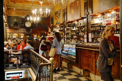 Nu vender man om og går direkte ind i Bairro Altos labyrint af gader med et utal af restauranter, sydamerikanske barer, jazz-steder, syrede forretninger og Fado-restauranter, hvorfra portugisernes drivende sentimentale bluesagtige sang siver ud på gaden. De fleste Fado-restauranter i Bairro Alto er der dog mest til ære for turisterne.