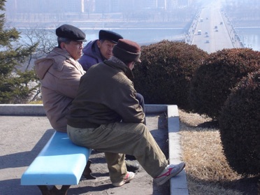 Vi ankom til Nordkorea med fly. Nu forlader vi Pyongyang en solbeskinnet formiddag med toget til Beijing fra byens monumentale banegård. Vi tager hjerteligt afsked med Mrs. Li og Mr. Kim, og toget snegler sig gennem Nordkoreas grå landskab med folk på slidsomt arbejde på markerne, et par oksetrukne kærrer og stort set aldrig en traktor.